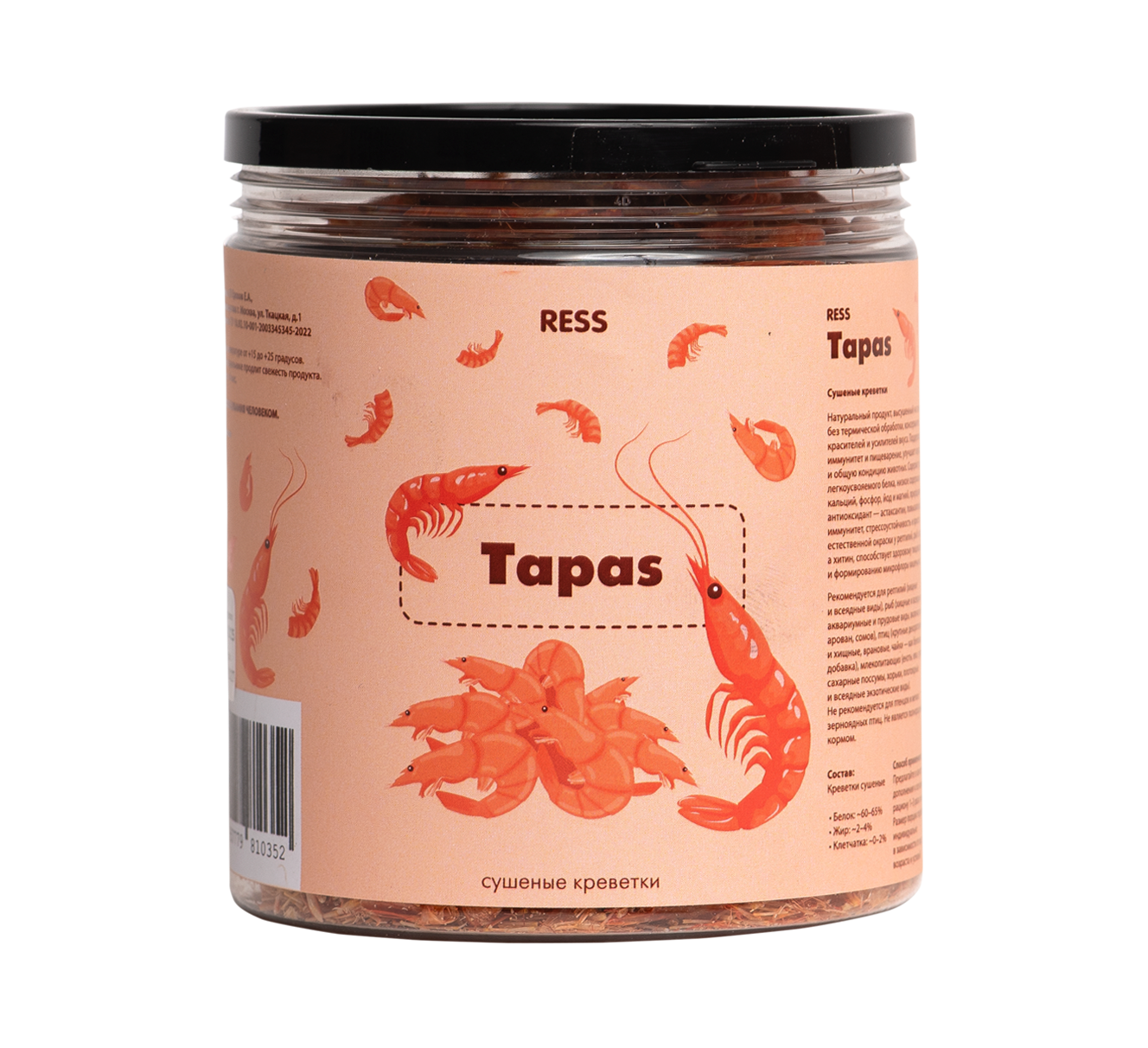 Состав: креветка сушеная. Белок: ~60–65% Жир: ~2–4% Клетчатка: ~0–2%